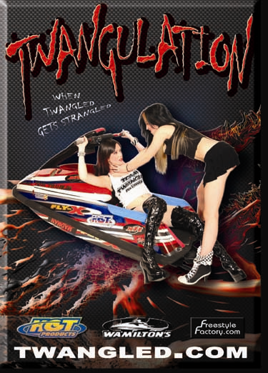 Twangulation ~ When Twangled gets strangled. This video is packed full of action sports including jet ski racing and freestyle. In Twangulation we have also added add grass roots auto racing, whitewater rafting, a trailer race demo derby, rocket cars, Monster trucks, total destruction, and monster machines that eat cars for lunch. This video has Burtka and Brock all choked up. Add in a few cuties and this is one fun video all will enjoy. Featuring: Gary Burtka, Greg Brock, Mike Hoffman, Kyle Burtka, Jessica Wiebesiek, Jessica Brannam, and many more!